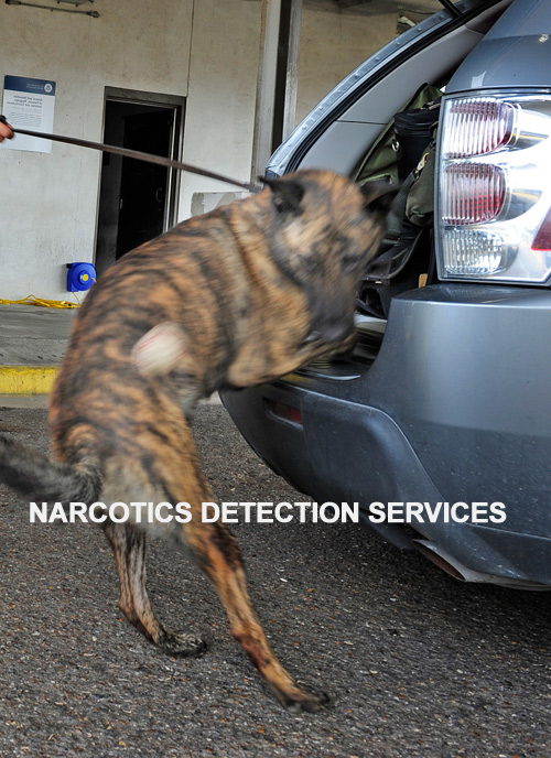 Our drug detection dogs are trained to detect marijuana, cocaine, crack cocaine, heroin and methamphetamines.